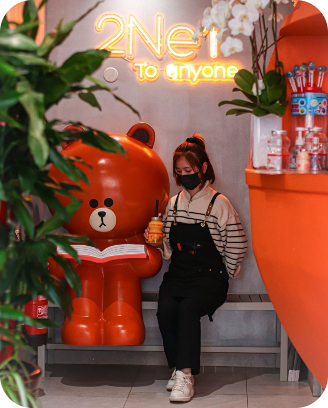 2ne1 a été fondé en 2021 par Kim et Lo, deux femmes passionnées de bubble tea et pâtisseries. Leur but était de créer un bubble tea avec un univers unique qui serait dédié à tous, pour les plus grands comme les plus petits.